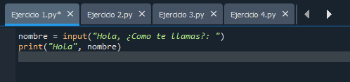 Este programa es sencillo ya que solo nos pide que, por medio de un input guardemos una variable, en este caso el nombre, y luego imprimamos esta variable en pantalla