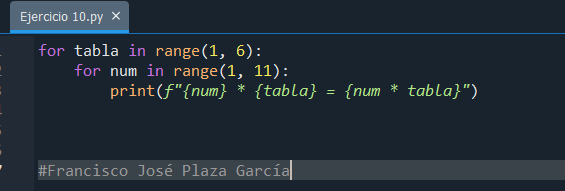 Este programa muestra las tablas de multiplicar de los números del 1 al 5. Utiliza bucles para recorrer cada número y mostrar su tabla de multiplicar completa de forma ordenada en pantalla.
