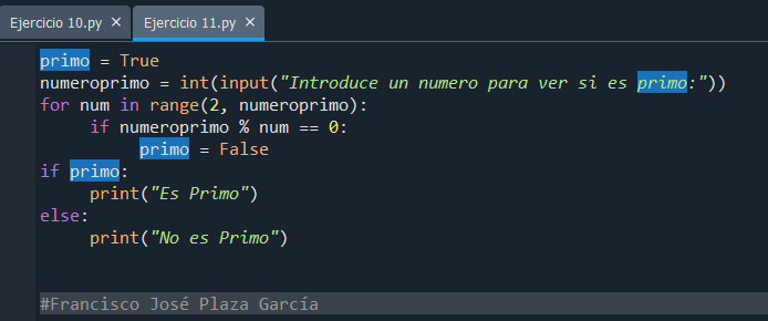Escribe un programa que diga si un número introducido por teclado es o no primo. Un número primo es aquel que sólo es divisible entre él mismo y la unidad. Nota: Es suficiente probar hasta la raíz cuadrada del número para ver si es divisible por algún otro número.
