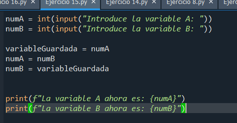 Dadas dos variables numéricas A y B, que el usuario debe teclear, se pide realizar un algoritmo que intercambie los valores de ambas variables y muestre cuánto valen al final las dos variables.