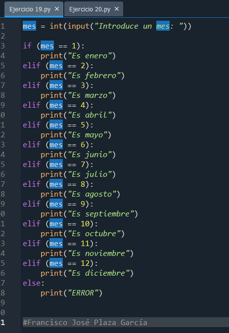 Este programa pide un número entre 1 y 12 y, según el mes ingresado, muestra la cantidad de días que tiene, considerando los meses de 30, 31 días y febrero.