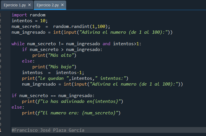 Este programa genera un número aleatorio entre 1 y 100 que el usuario debe adivinar. El usuario tiene un máximo de 10 intentos. En cada intento, el programa indica si el número a adivinar es mayor o menor que el introducido. El programa termina cuando se acierta el número o cuando se agotan los intentos, mostrando el resultado correspondiente.