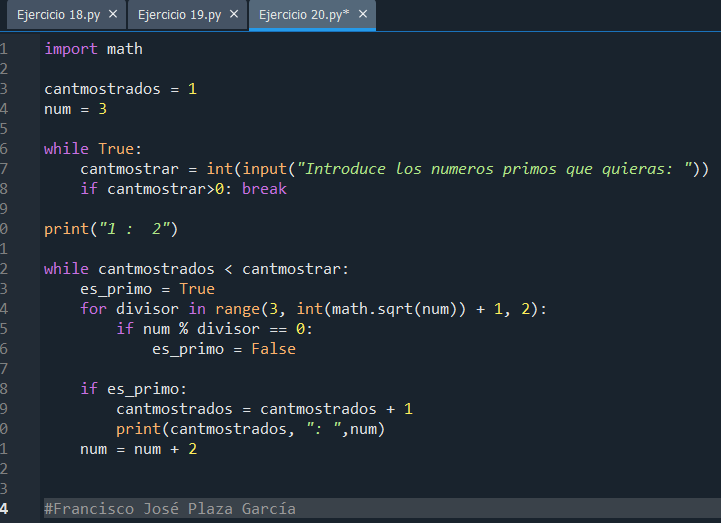 Mostrar en pantalla los N primero número primos. Se pide por teclado la cantidad de números primos que queremos mostrar.
