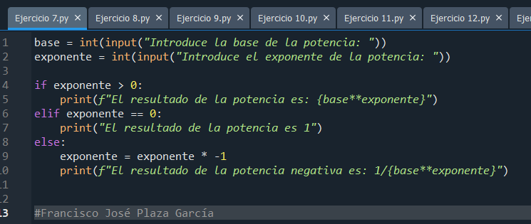 Este programa pide la base y el exponente. Utiliza condicionales para distinguir si el exponente es positivo, cero o negativo. Según el caso, calcula la potencia, devuelve 1 o calcula el inverso de la potencia correspondiente.