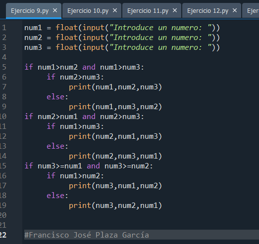 Este programa solicita tres números y utiliza estructuras condicionales para compararlos entre sí y mostrarlos ordenados de mayor a menor.