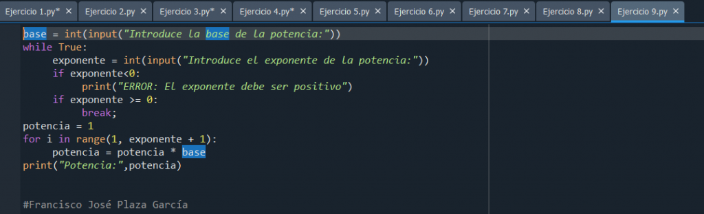 Escribe un programa que dados dos números, uno real (base) y un entero positivo (exponente), saque por pantalla el resultado de la potencia. No se puede utilizar el operador de potencia.